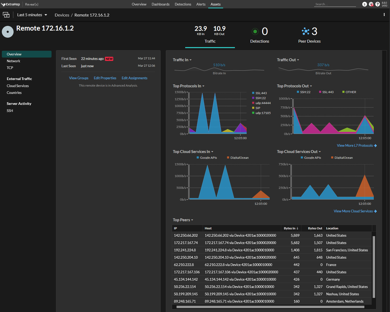 We can see that 172.16.1.2 is discovered as a remote device and is having its traffic analized.